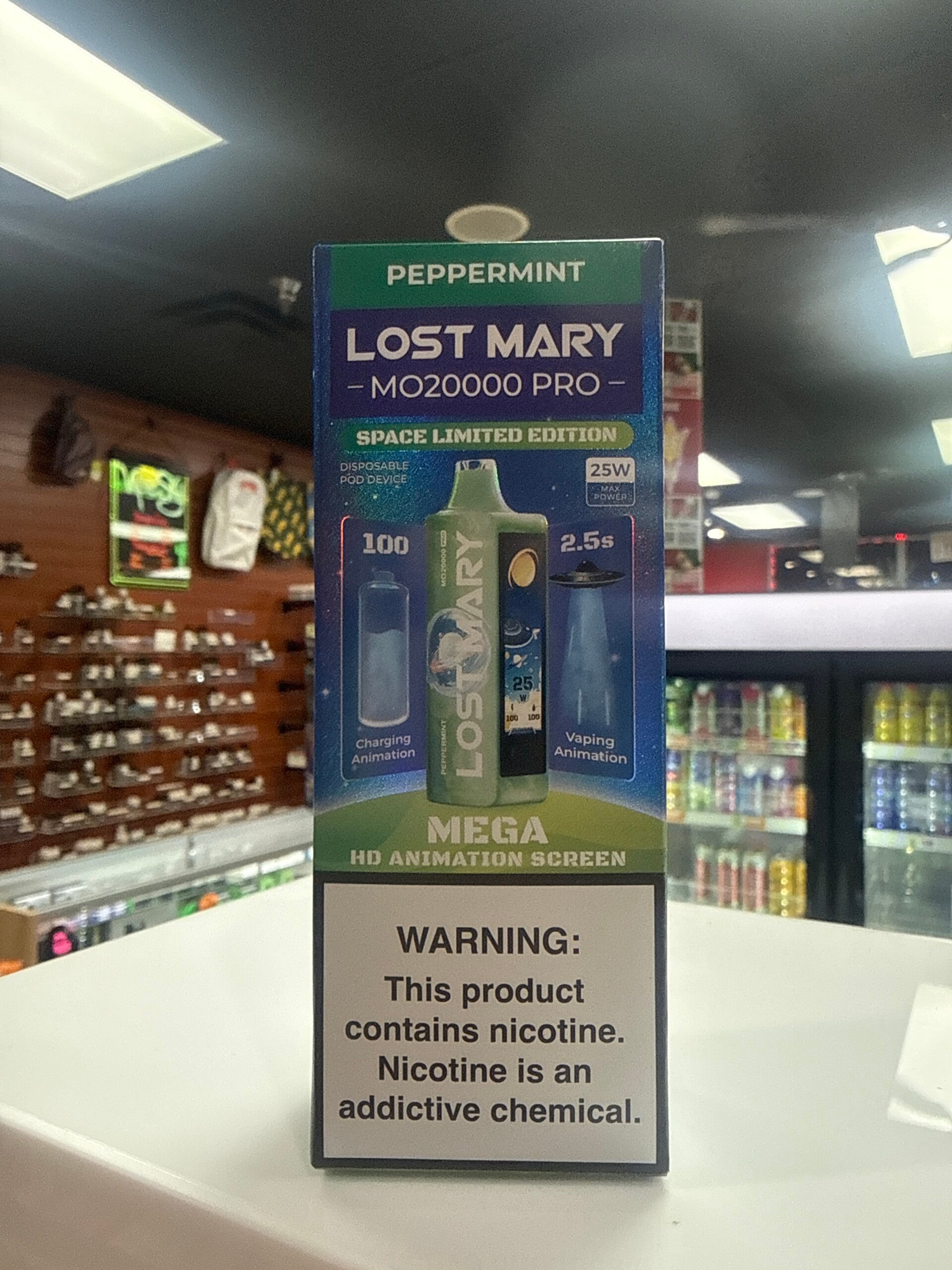 Explore the galaxy of flavor with the Lost Mary MO20000 PRO Space Limited Edition. This specialized device offers up to 20,000 Puffs and features a stunning Mega HD Animation Screen that brings your vape to life. With adjustable wattage (up to 25W) and a 0.8Ω mesh coil, you can fine-tune every hit for the perfect balance of cool peppermint and dense vapor.